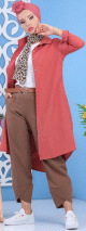Chemise-Tunique ample à manches décorées (Vêtement chic femme voilée Paris) - Couleur kaki et brique - REF. 38588 (24.90 €)