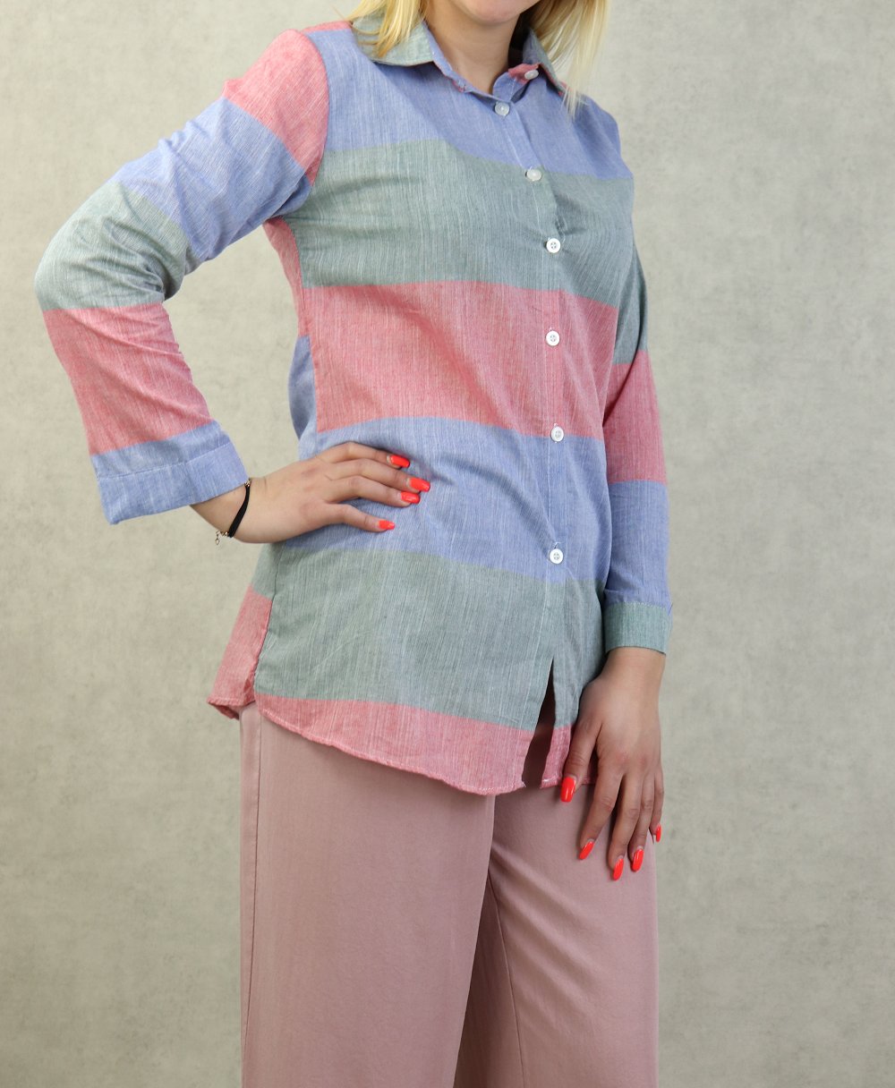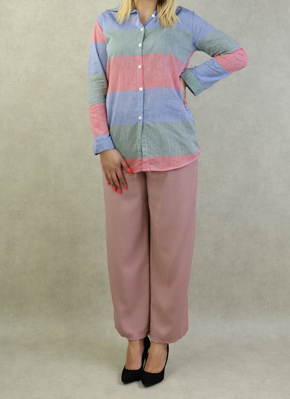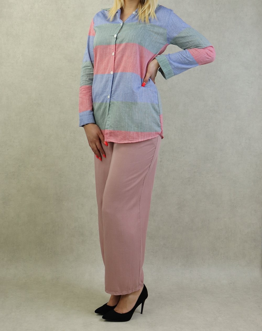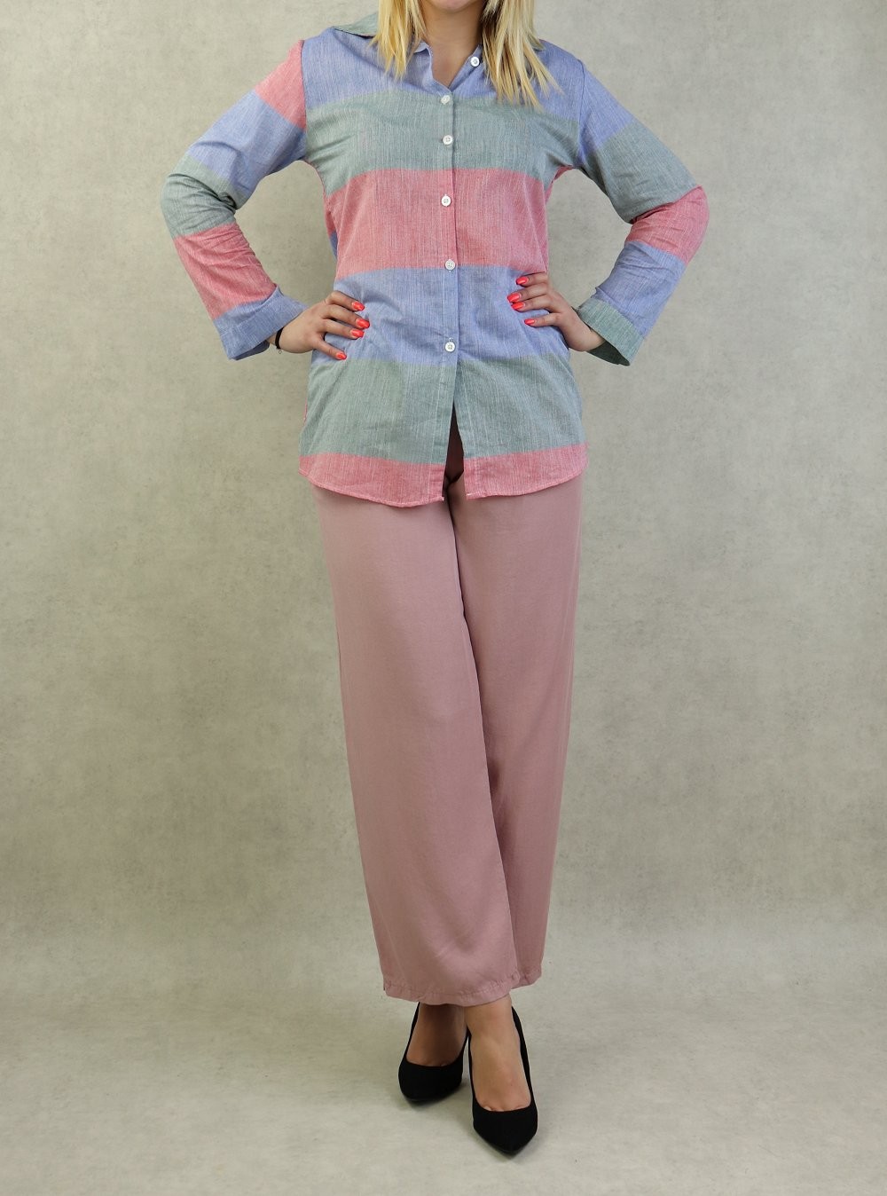Chemise tricolore rose, bleu et blanc, ultra légère et facile à porter, manches longues avec fermeture boutons. Vous pouvez la porter avec tout type de pantalon.