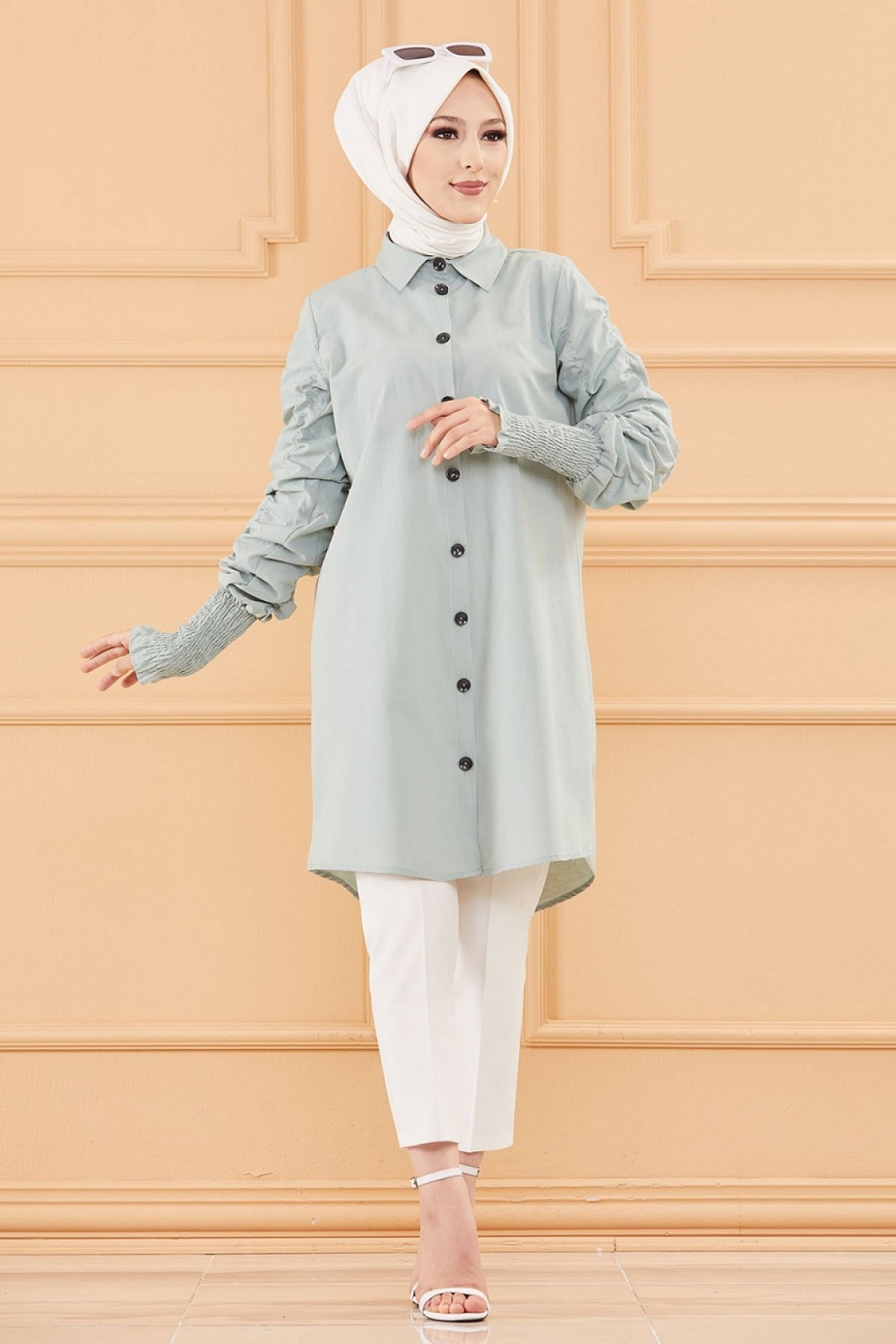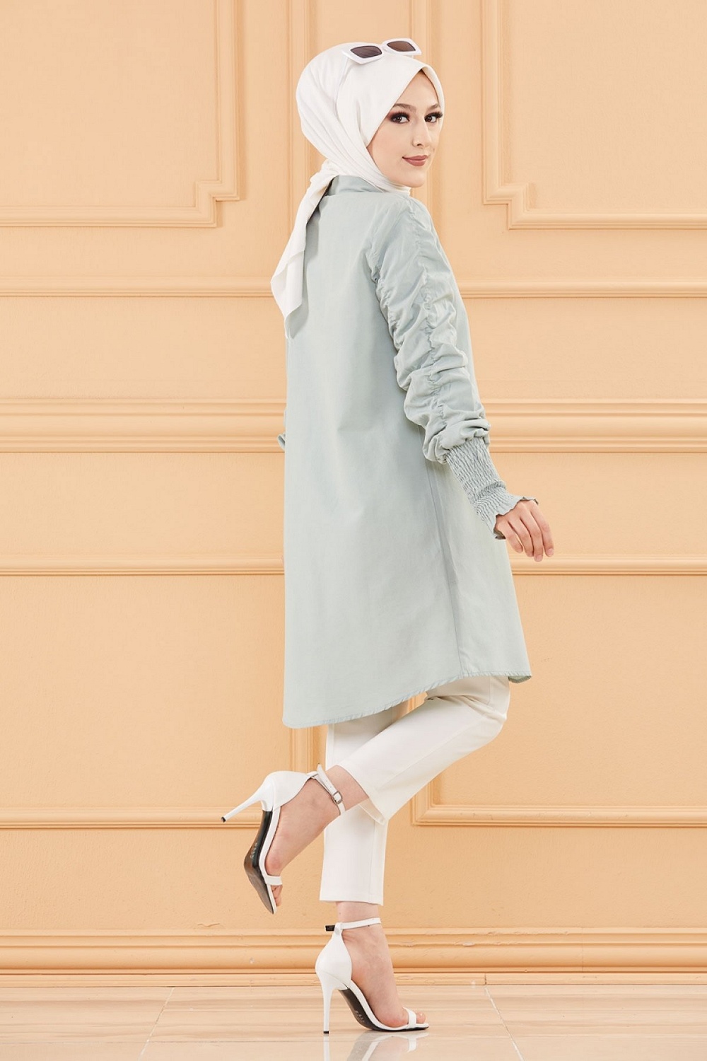 Chemise manche plisse a l'elastique (Tenue hijab chic pour femme) - Couleur menthe