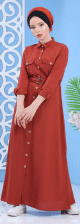 Robe longue casual boutonnée avec sa ceinture (Vetement pour femme musulmane) - Couleur brique - REF. 33928 (35.00 €)