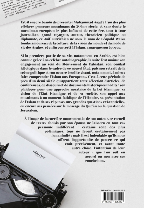 Si la première partie de sa vie, notamment en Arabie, est bien connue grâce à sa célèbre autobiographie, la suite l’est moins : son engagement au sein du Mouvement du Pakistan, son combat idéologique dans le cadre de ce nouvel État, puis son retrait de la scène politique et son oeuvre érudite visant, notamment, à mieux faire comprendre l’Islam aux Européens. C’est à cette période de près d’un demi-siècle qu’appartient cette sélection d’articles, de conférences, de discours et de documents historiques inédits : son plaidoyer pour une approche novatrice de la Loi islamique, sa vision de l’État islamique et de sa société, son appel aux musulmans à un moment fatidique de l’Histoire, sa présentation de l’Islam et de ses réponses aux grandes questions existentielles, ou encore ses pensées sur le message du Qur’ân ou la question de Jérusalem.
