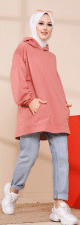 Sweat ample à capuche pour femme imprimé au dos "I am where are you?" (Tunique décontractée pour Hijab) - Couleur rose - REF. 35812 (18.00 €)