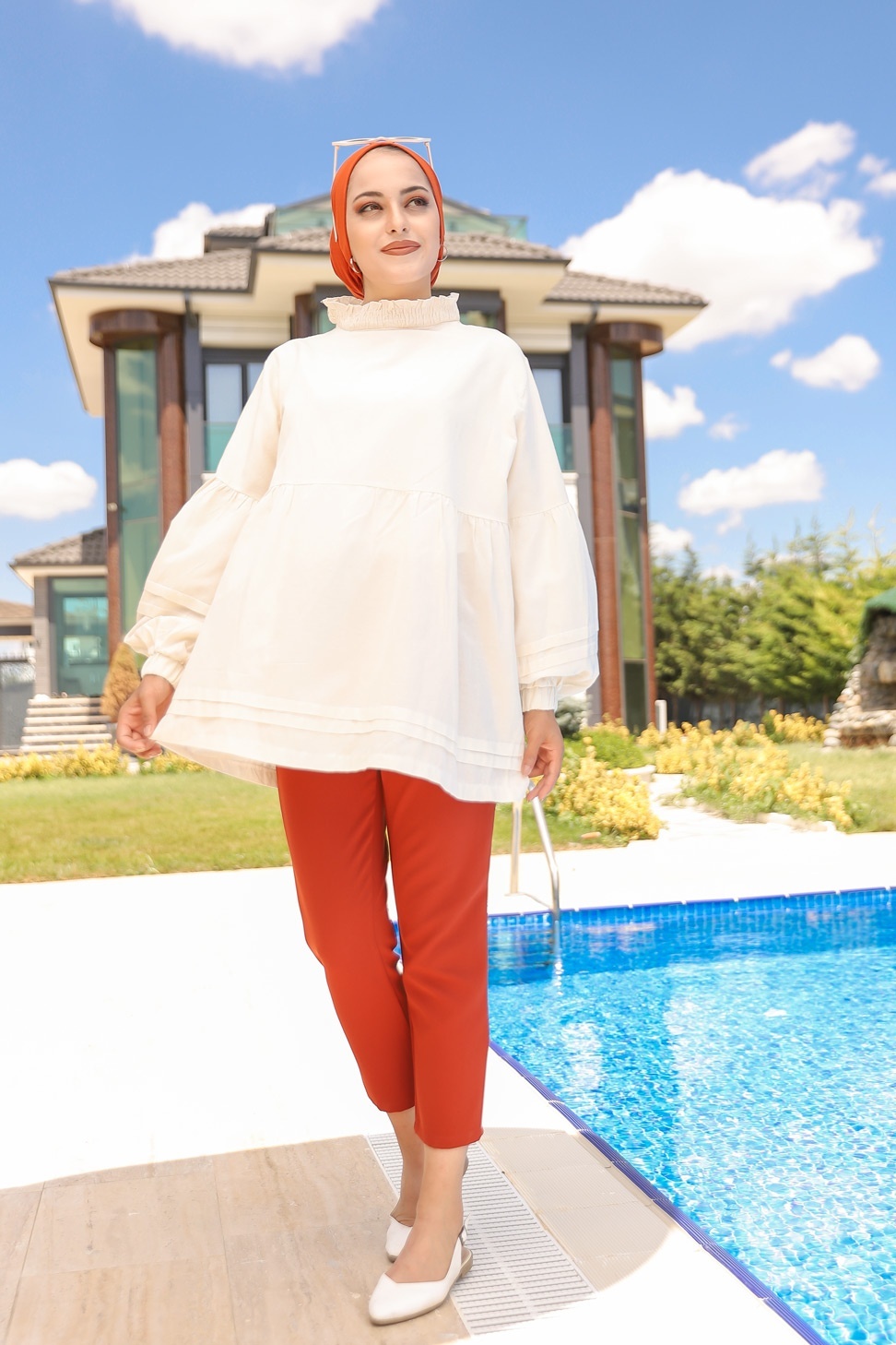 Tunique ample à manches larges pour femme - Couleur crème Vetement & Accessoire
