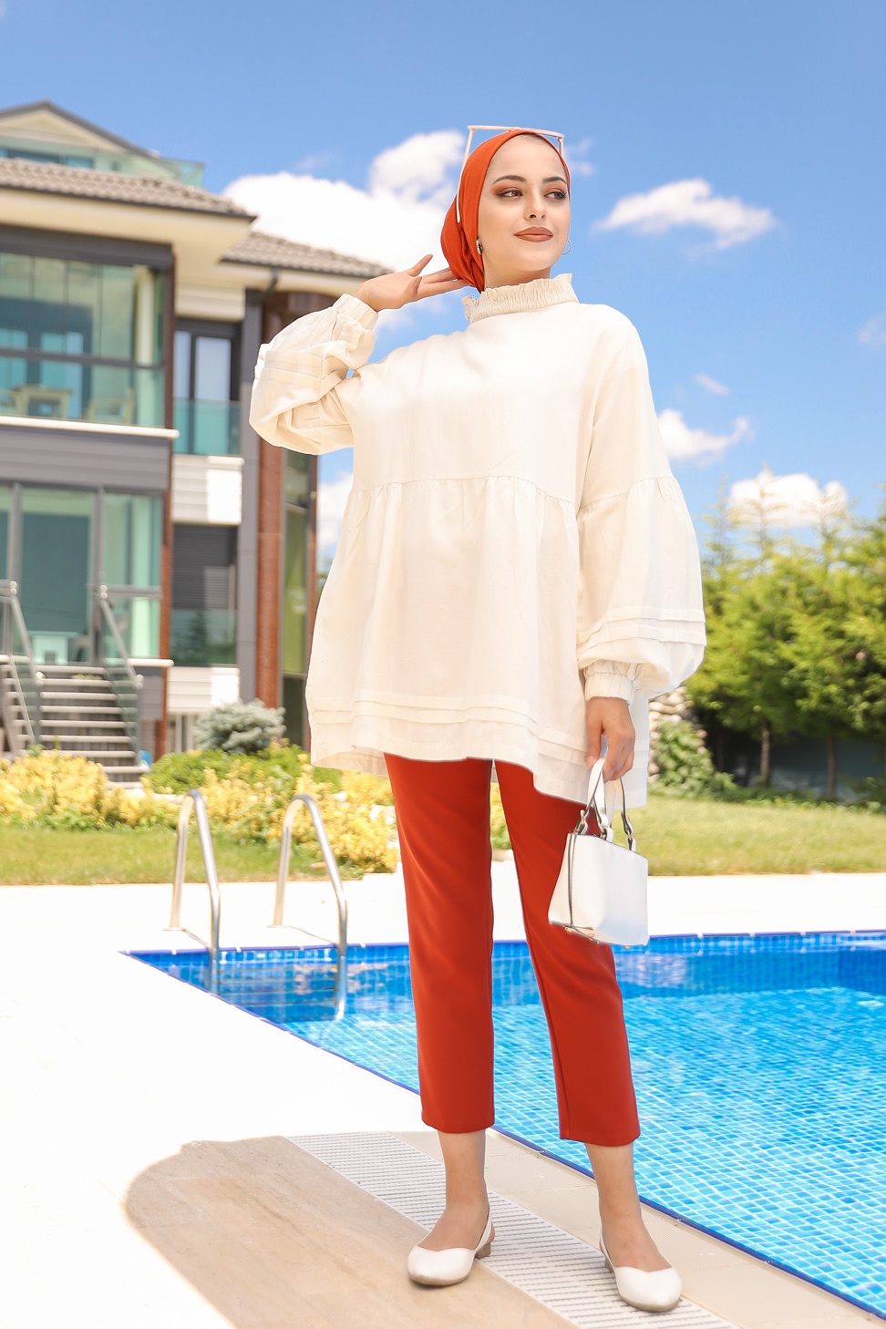 Chemise manche plissé à l'élastique (Tenue hijab chic pour femme) - Couleur menthe - REF. 38321 (22.00 €)