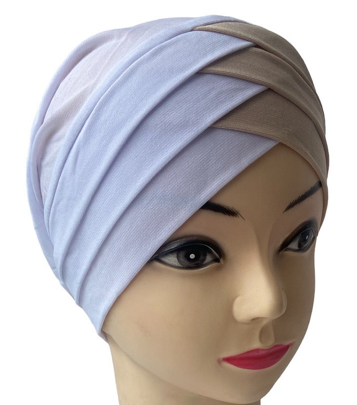 Ce turban bicolore plissé à l'avant, léger et très facile à porte va donner une touche d'élégance et de vitalité a votre tenu, en quelques secondes. Il est disponible en plusieurs couleurs.