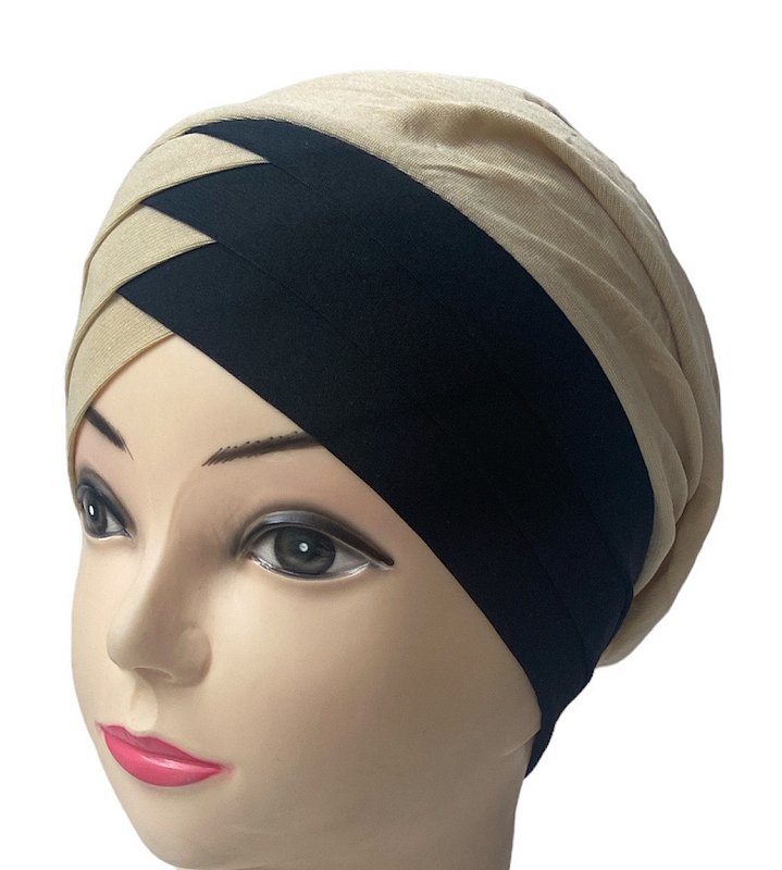 Turban bonnet croisé bicolore femme moderne - Couleur Sable et Noir Vetement & Accessoire
