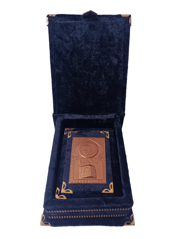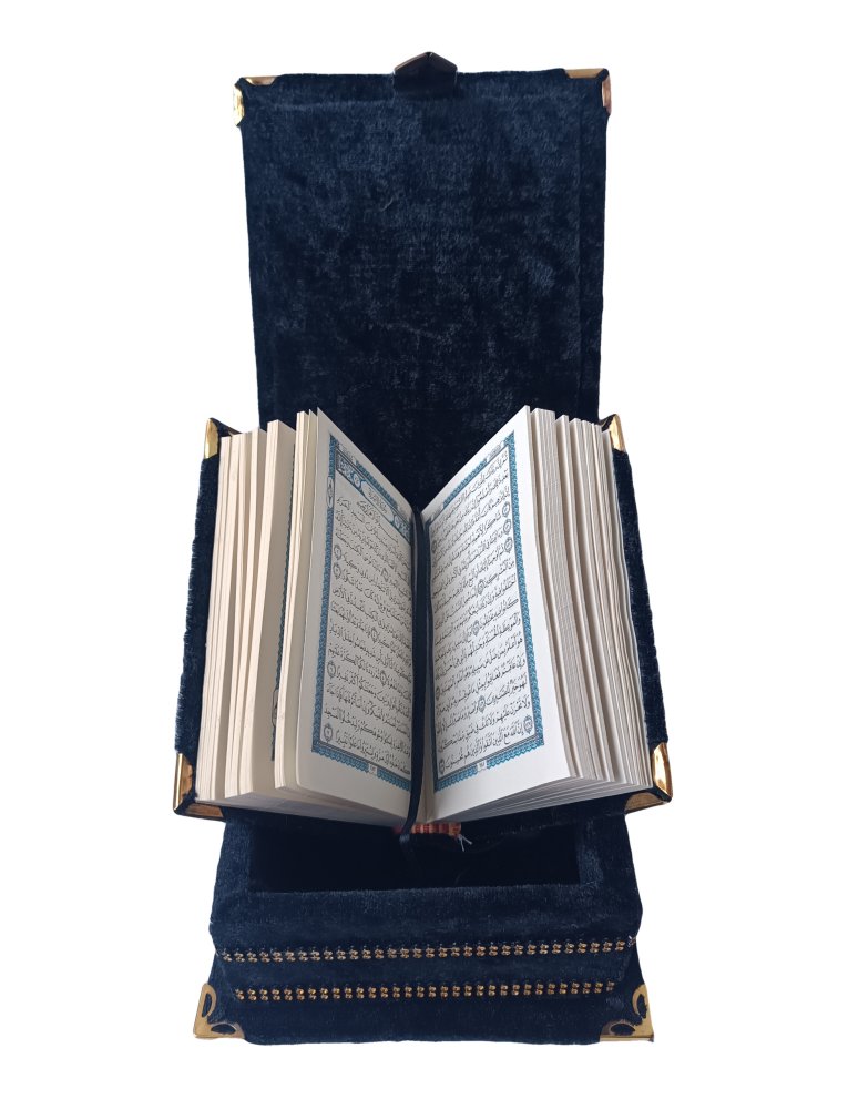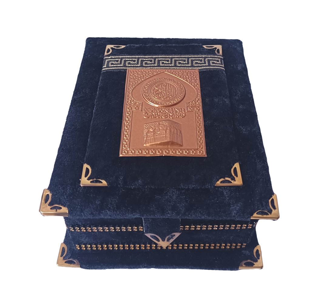 Recevez ce Coffret artisanal décoratif sous forme de Kaaba avec son Coran assorti (recouvert de velours). Le Coran assorti est en langue arabe, il a son emplacement à l'intérieur ou peut être mis en présentation comme sur la photo.