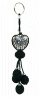 Porte-clés artisanal coeur en métal argenté ciselé et pompon en sabra - Noir - REF. 29134 (5.90 €)