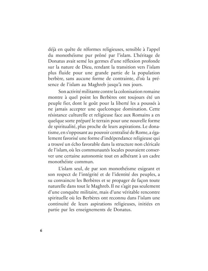 « Aucun mouvement dans l’histoire de l’Afrique du Nord pendant l’occupation romaine n’a été aussi global que le donatisme. C’était une révolution purificatrice du christianisme contre l’Église catholique, un mouvement populaire qui appelait à la justice et à l’égalité entre les Romains et les habitants autochtones, les Amazighs ou Berbères, comme les appelaient les Romains. Il s’agissait aussi d’un mouvement indépendantiste et libérateur contre l’occupant romain qui imposait des taxes et pillait les richesses, faisant de l’Amazigh un travailleur misérable sur sa propre terre.
