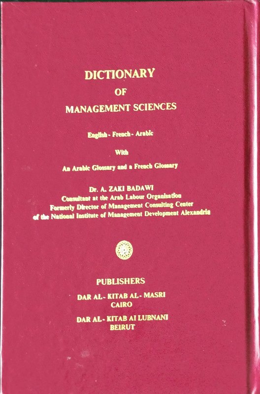 Dictionary of management sciences (English-French-Arabic) - معجم مصطلحات العلوم الإدارية (إنجليزي - فرنسي - عربي) Livre