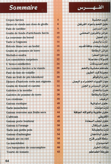 La table gourmande (bilingue français / arabe) plats variés et plats algériens.