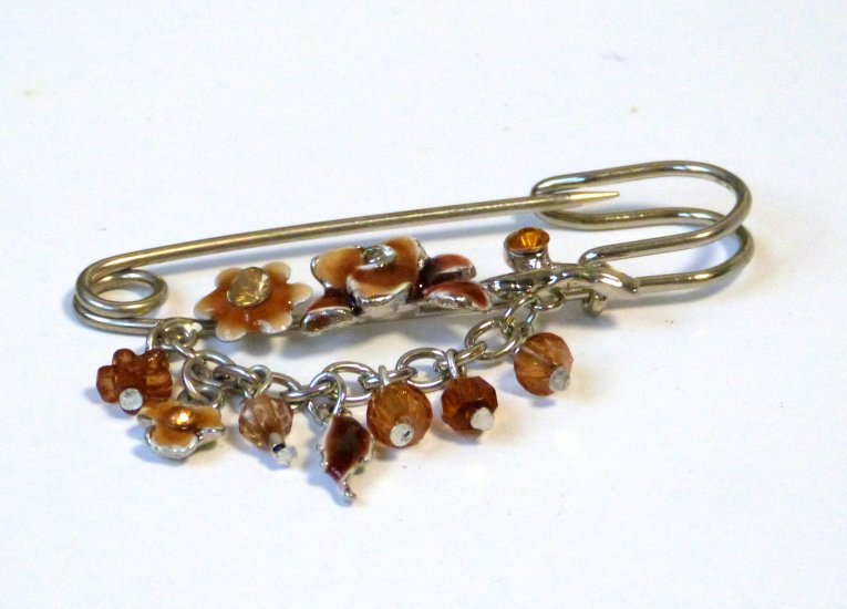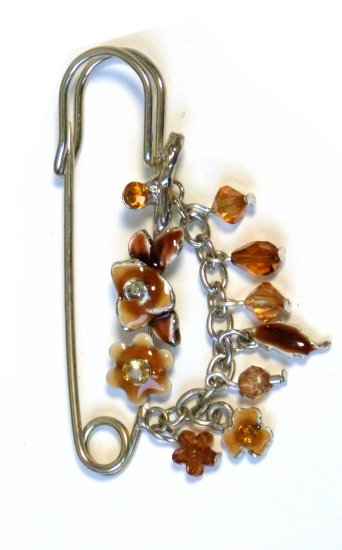 Grande épingle argentée en forme de fleurs marrons avec perles bleues pour Hijab.