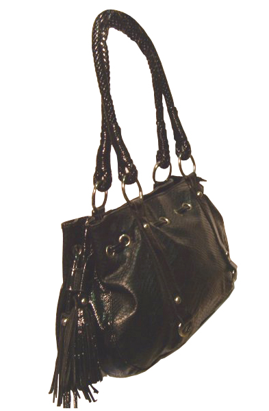 Sac à main noir pour femmes imitation crocodile. Fermé par zip. Pochettes intérieures.