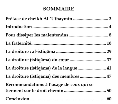 Un livre qui explique ce qu’est réellement « la droiture » (al-istiqâma) en islam et qui montre du doigt les fautes de comportement de nos frères et sœurs oubliant les principes de fraternité et de bon conseil.