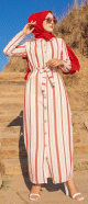 Robe chemise très longue à rayures (Vêtement décontracté pour femme musulmane) - Couleur crème et rouge - REF. 33916 (25.00 €)