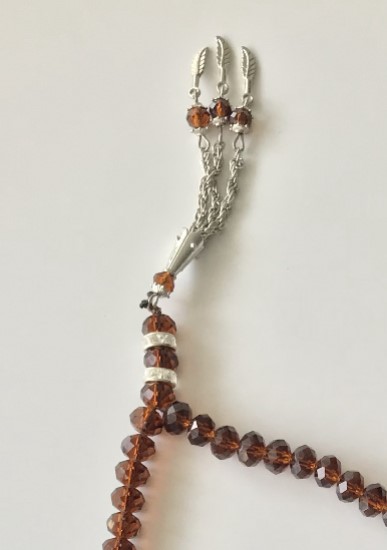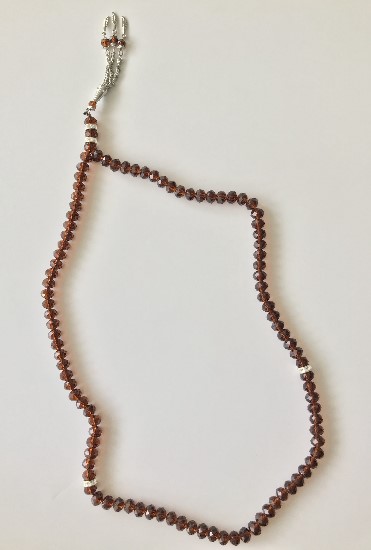 Très beau chapelet (sabha) de luxe en verre cristal et parties métalliques, avec séparation tous les 99 grains.