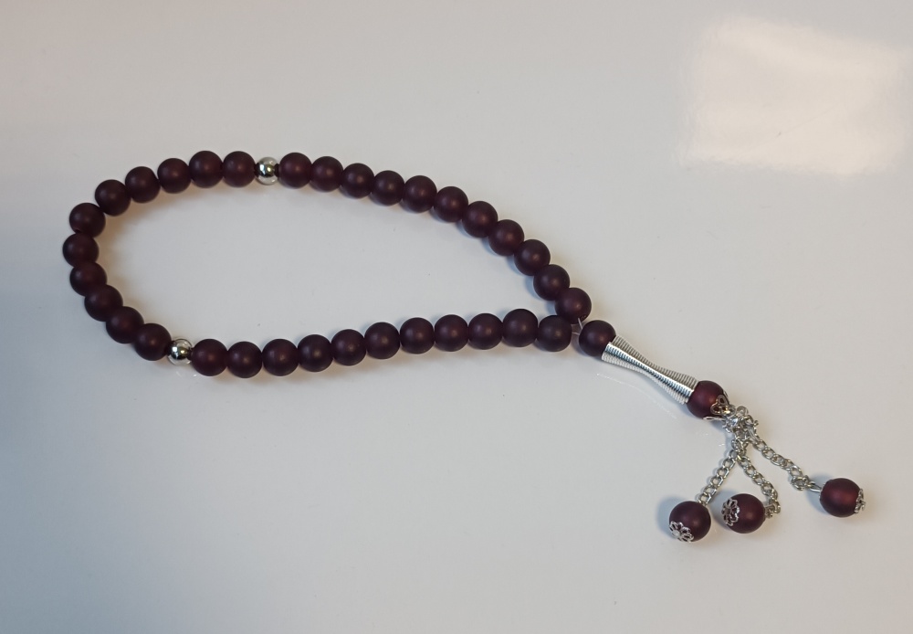 Chapelet (Subha) de luxe à 33 perles de couleur Rouge fumé avec parties argentées - REF. 40291 (8.00 €)