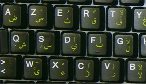 - Clavier bilingue Azerty français/arabe avec affichage complet des caractères et vocalisations de la langue arabe. Touches arabes en couleur vert fluo très lisible.