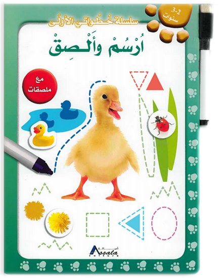 Livre d'éveil avec pages effaçables pour apprendre l'écriture (le dessin) avec des activités d'autocollants à coller aux bons emplacements.