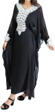 Robe orientale longue pas cher à manches courte avec broderies pour femme - Couleur noir - REF. 36095 (18.00 €)