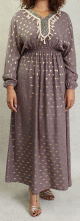 Robe orientale longue avec nombreuses broderies dorées - Couleur Gris - REF. 33048 (32.00 €)