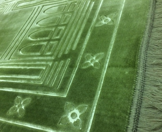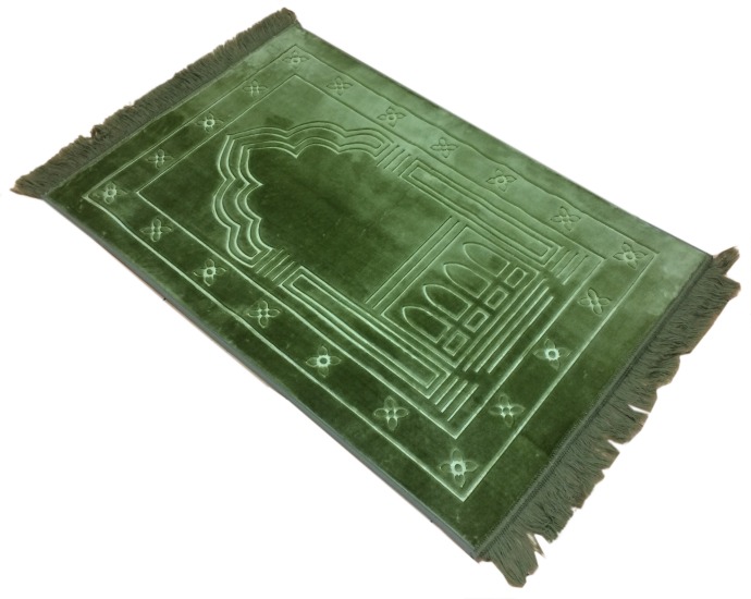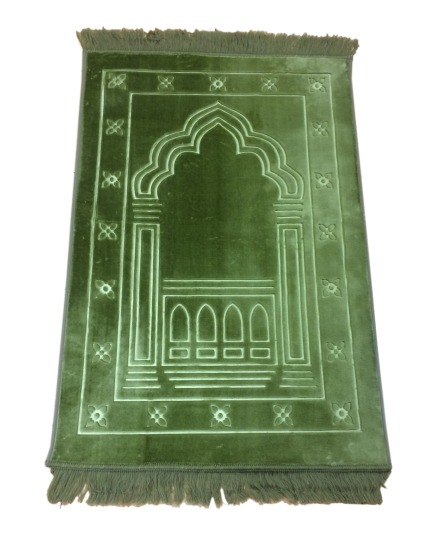 Grand tapis de prière luxe épais de couleur vert kaki avec motif kaaba discret - REF. 25179 (12.00 €)