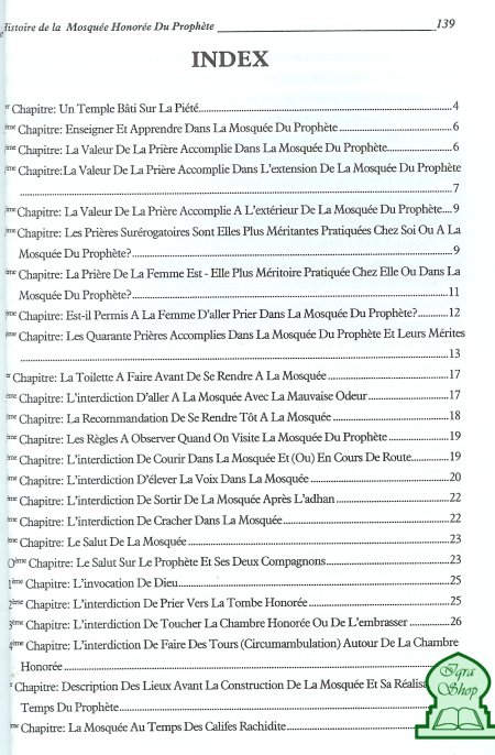 La plus illustre des mosquées est la mosquée sacrée de la Mecque, puis la mosquée du Prophète, ensuite celle de l'Aqsa. Le Prophète a bâti sa mosquée dès son arrivée à Médine l'illuminée.