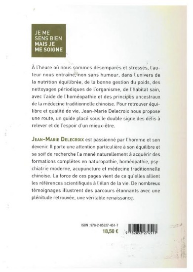Jean-Marie Delecroix est passionné par l'homme et son devenir. Il porte une attention particulière à son équilibre.Sa soif de recherche l'a mené naturellement à acquérir des formations complètes en naturopathie, homéopathie, psychiatrie moderne, acupuncture et médecine traditionnelle chinoise.Cet ouvrage puise sa force dans l'alliance des références scientifiques à l'élan de la vie que prône l'auteur. De nombreux témoignages étayent des parcours étonnants jalonnés d'une plénitude retrouvée.