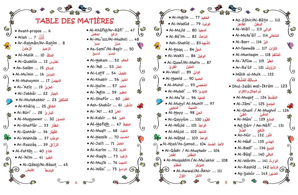 Les 99 Beaux Noms d'Allah (arabe/français/phonétique) - Les Noms Divins - REF. 9726 (2.50 €)