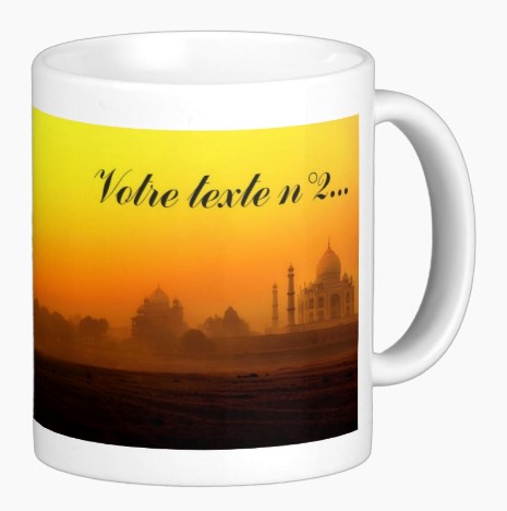 Mug personnalisable avec très belle photo du Taj-Mahal (Inde) et d'une caravane de chameaux pendant le coucher du soleil...