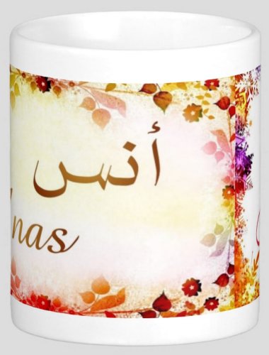 Mug avec le prénom "Anas" calligraphié en arabe (أنس).