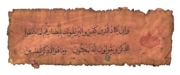 Mug pour décoration avec jolie calligraphie sur ancien papyrus. Il s'agit des versets 51 et 52 de la Sourate 68, Al Qalam (La Plume)qui dit : "(51) Peu s’en faut que ceux qui mécroient ne te transpercent par leurs regards, quand ils entendent le Coran, ils disent: «Il est certes fou!» (52) Et ce n’est qu’un Rappel, adressé aux mondes !"