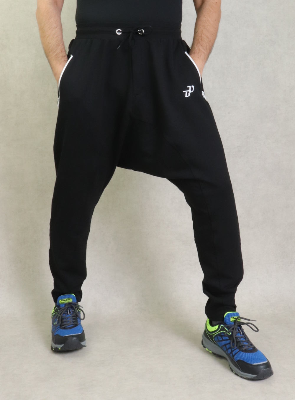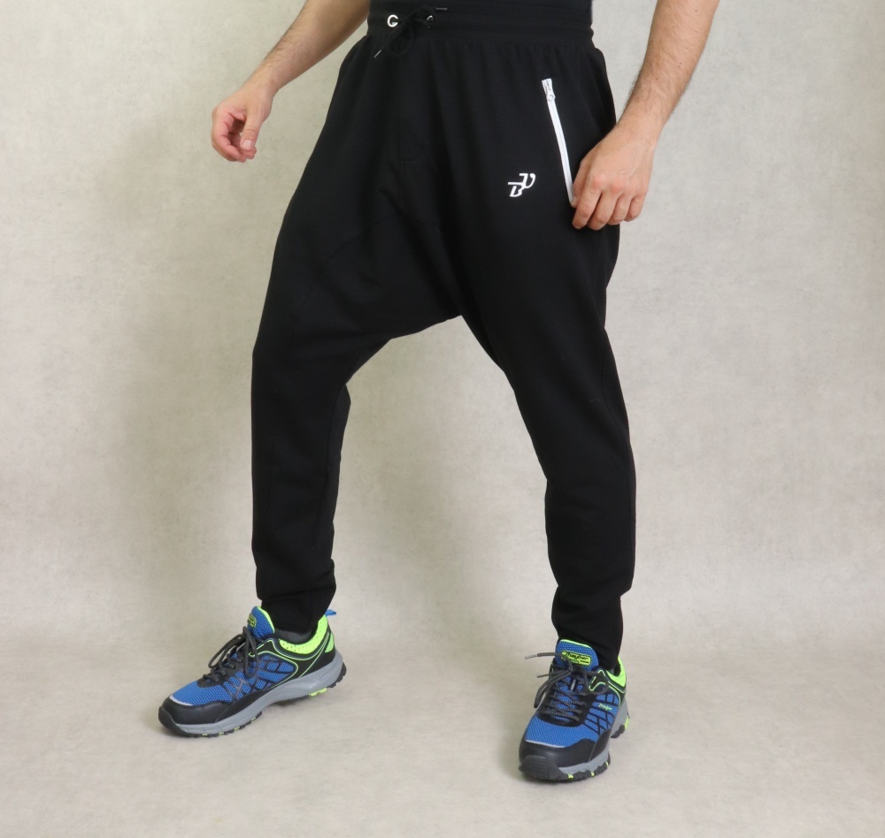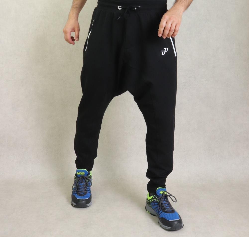 Sarouel large et long couleur noir. Deux poches zippées latérales et une poche arrière zippée. Braguette fermeture éclair. Tissu jogging léger type coton stretch. Brodé logo BU (Best Ummah).