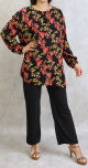Tunique noire à fleurs rouges et bleues (Grande taille disponible pour femme) - REF. 32093 (19.00 €)