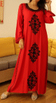 Robe orientale longue brodée décorée de strass et perle pour femme - Couleur Rouge coquelicot - REF. 30943 (26.00 €)