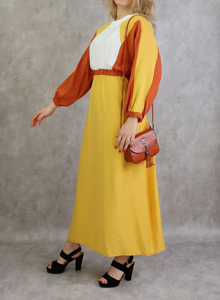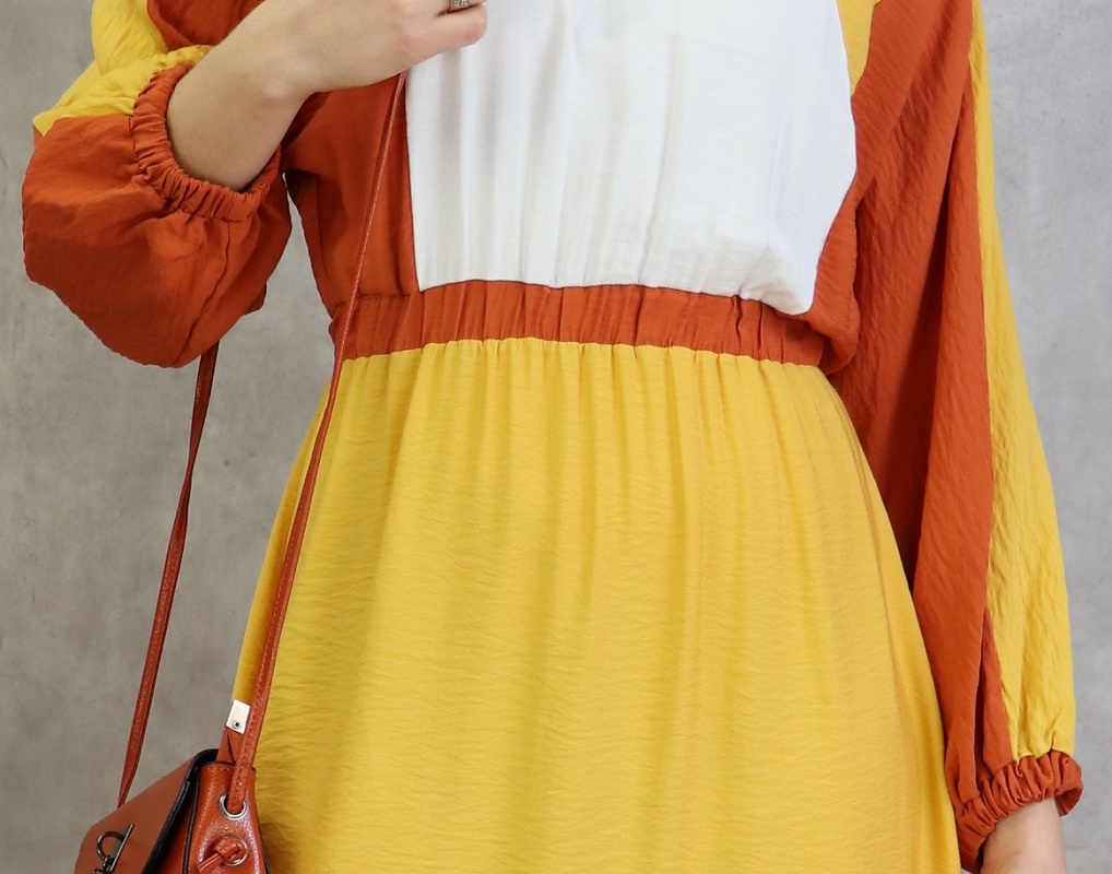 Originale de par ces différentes couleurs bien assorties, optez sans hésiter pour cette robe mi-saison, casual et décontractée.