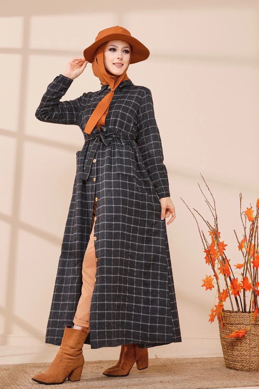 Robe longue, col chemise, manches droites finition bouton, taille cintrée, ceinture assortie à passants, 2 poches plaquées, fermeture sur toute la longueur a boutons. Optez pour cette robe originale et ses carreaux indémodables. Son tissu doux et chaud conviendra parfaitement pour la saison automne hiver.
