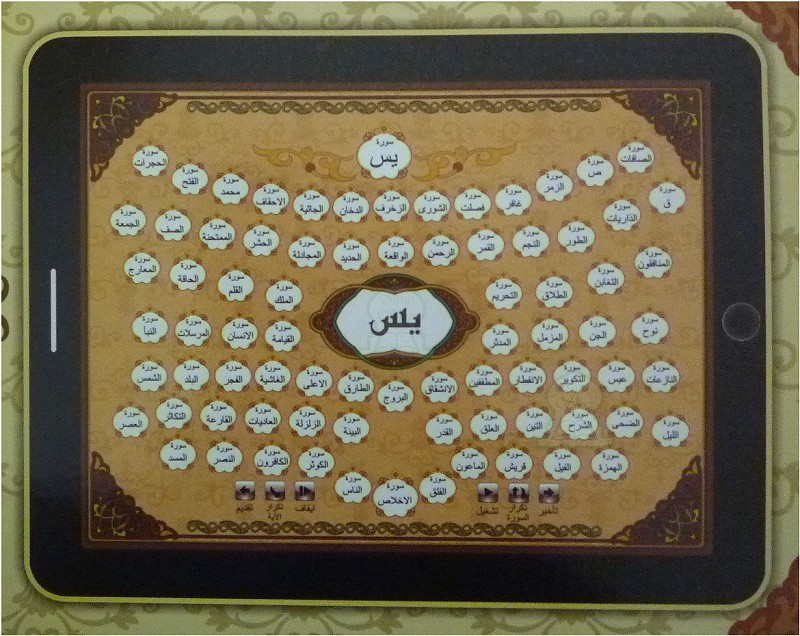 Tablette coranique avec récitation du Coran en arabe par les imams très connus de La Mecque : cheikh As-Soudais et Al-Shouraym.