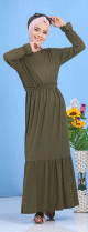 Robe tissu polaire avec ceinture (Vêtement Hijab Saison Automne-Hiver) - Couleur kaki - REF. 35699 (26.90 €)