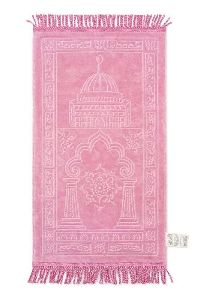 Tapis de prière adulte unie avec motifs - Ultra-doux type velours - Couleur rose clair - REF. 40315 (6.90 €)
